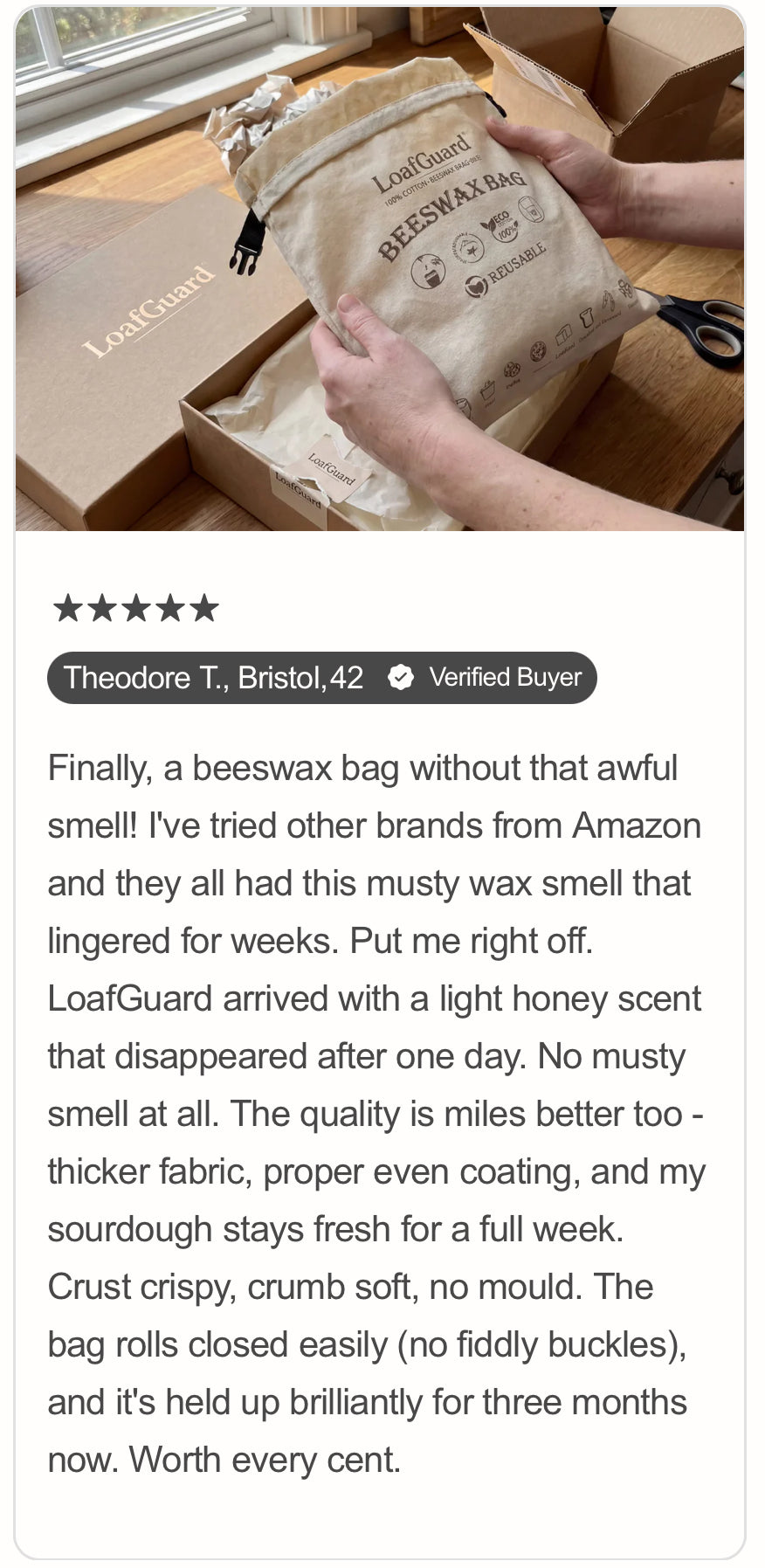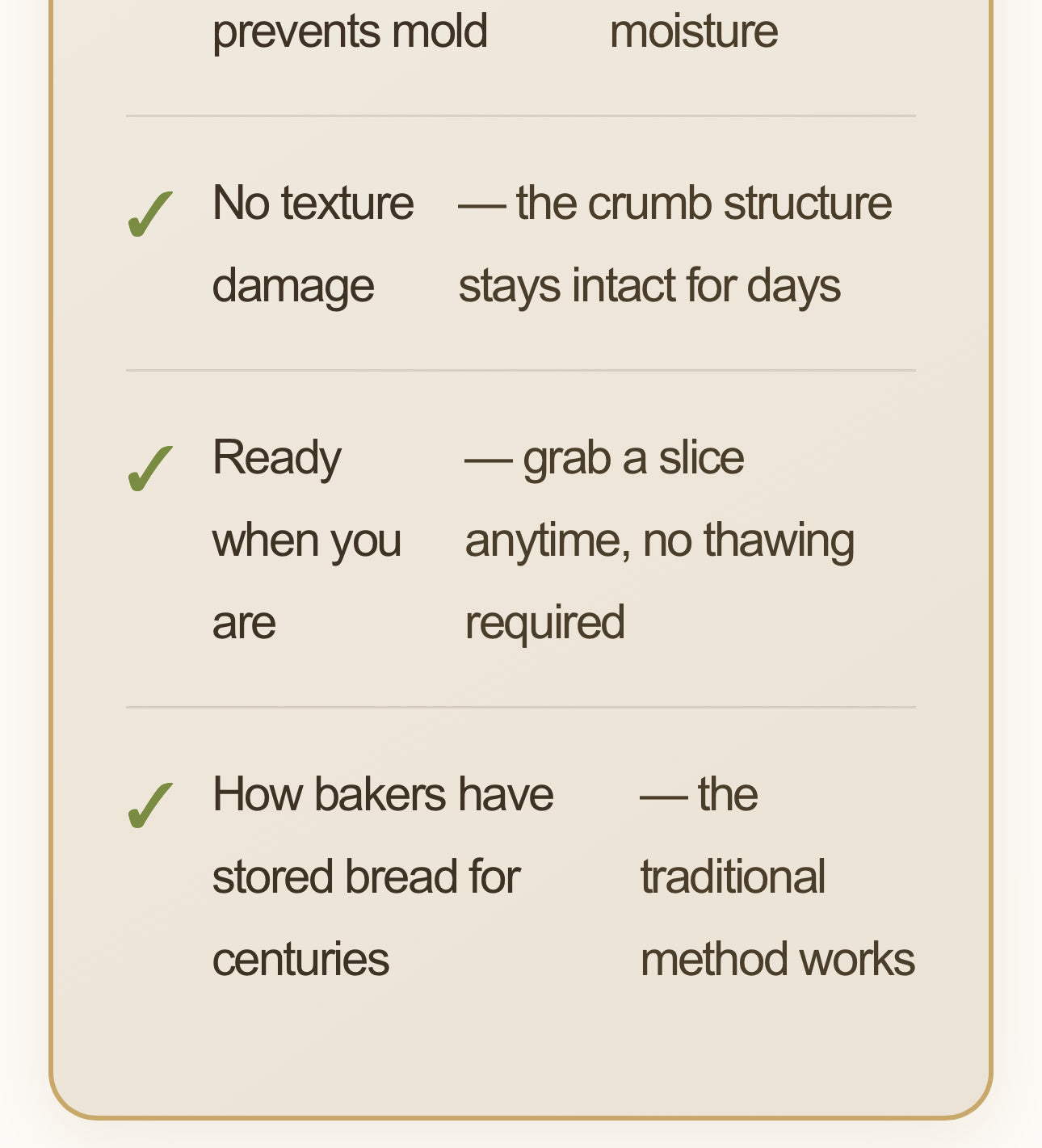 LoafGuard helps your bread stay fresher longer — maintaining texture, reducing moisture build-up, and cutting down on waste. Crisp crust. Soft crumb. Bread that gets eaten instead of thrown out.