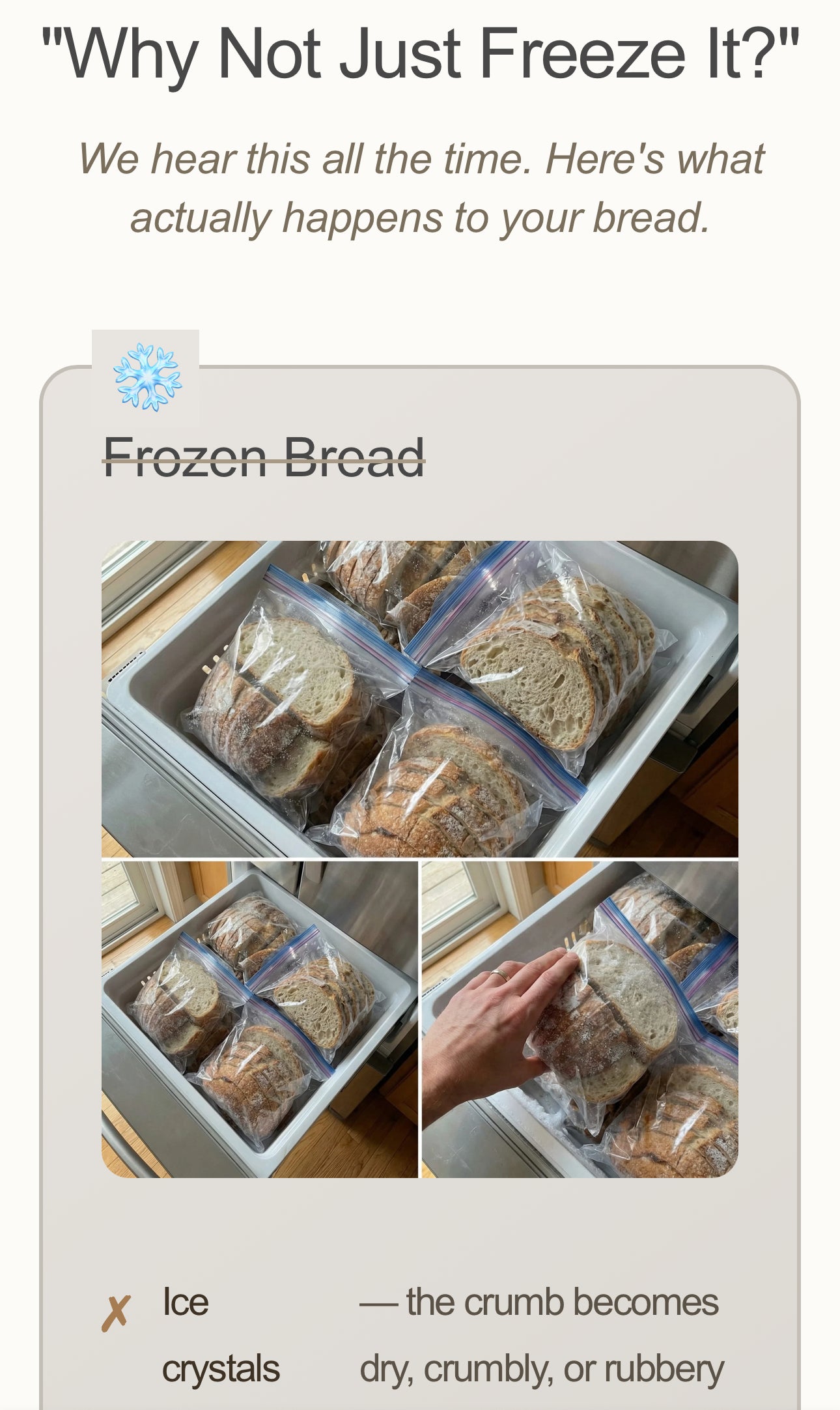 But when he saw home bakers everywhere struggling with the same frustrating cycle — bread going stale by day three, mold appearing by day five, half the loaf thrown away every single week — he realized something had been lost in translation.