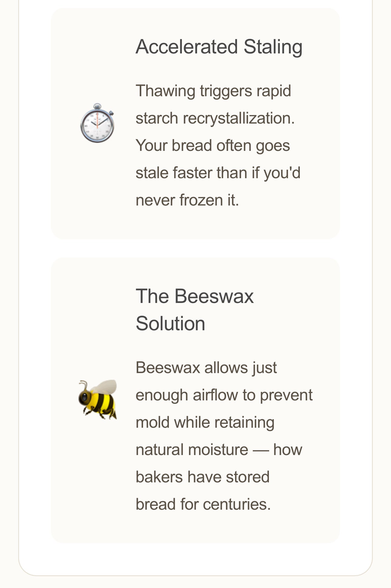 Long before plastic ever existed, they wrapped fresh loaves in beeswax cloth to preserve them naturally — keeping the crust crisp, the crumb soft, and slowing mold the traditional way.