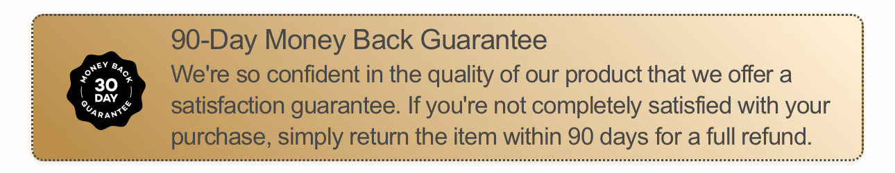 You’re fully protected by our 90-Day Money-Back Guarantee— if you are not happy with your purchase you get every single penny refunded, no questions asked.