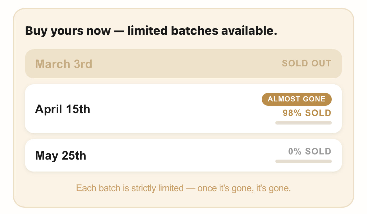 The 100% natural beeswax we use comes only from trusted local beekeepers — no chemicals, no shortcuts. Real beeswax is rare, seasonal, and in high demand. When it's gone, we wait for the next harvest.